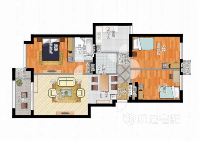 北京 大兴 北京城建 海梓府A户型 三室一厅 两卫 简约风格,预算20万