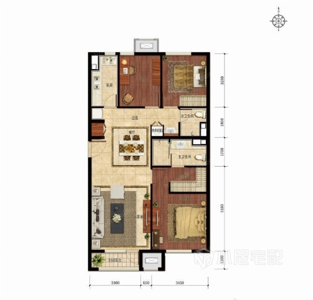 一块地毯,便简简单单地划分了客厅与餐厅。