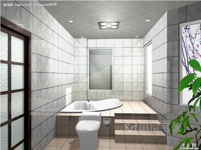卫生间的进门处摆了一盆绿植,为高冷的卫生间增加了生活的温度及趣味。