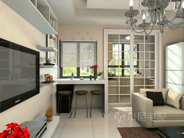 餐桌设置为吧台样式,位于窗口,便于节省空间,用餐同时观景更显惬意。