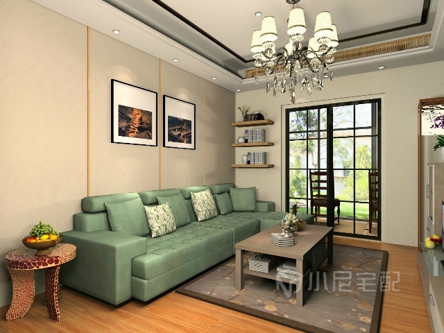 宽敞的阳台用绿色相交的沙发点亮整个屋,别有一般风味。