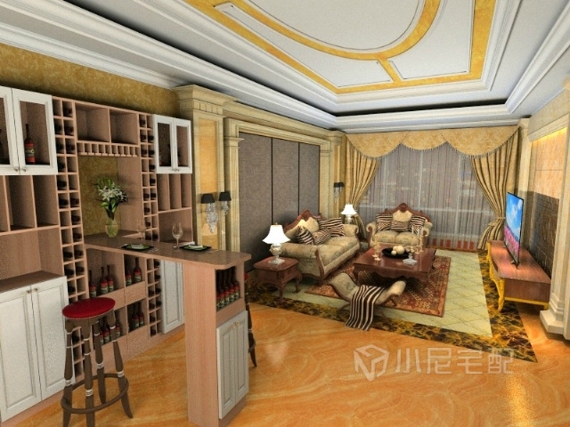 客厅欧式风格,背景墙和电视柜的选择,彰显他的大方典雅