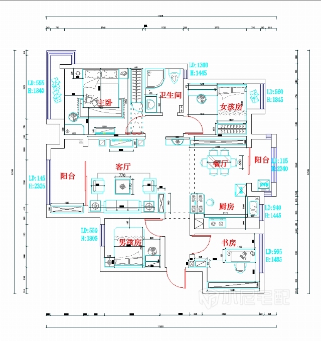 清新海蓝:明快纯净的天空颜色,让卧室整体变得非常得宁静淡定。但是全部用蓝色未免单调,因此床品、地毯、窗帘等布艺都选用了具有丰富图案的款式。