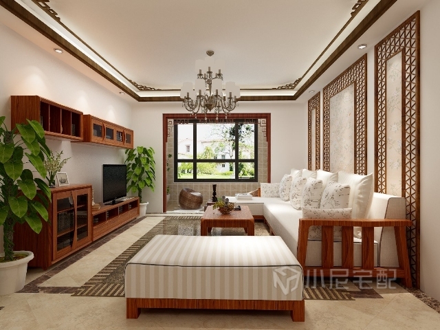 简单的中式元素,与沙发布艺的结合,摒弃生硬死板,更显亲切自然