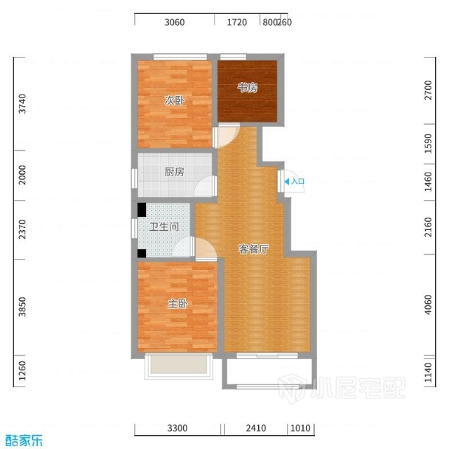 儿童房配有衣柜和转角书桌,具有充足的储物空间。