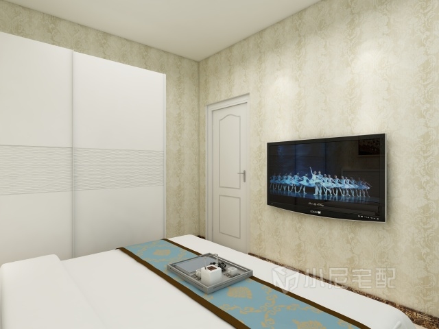 移门衣柜解决小户型空间问题,床头挂画体现主人品味。