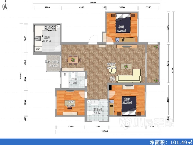 餐厅因为需要让出厨房通道。只选用该有的家具就OK了。