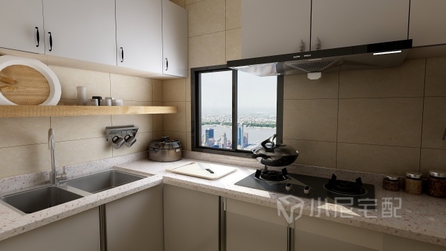 从左至右依次是水盆、操作台和灶台,更方便的按顺序料理食材。这样能够防止在厨房的频繁走动。