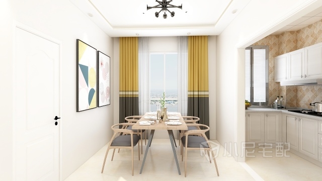 两口之家,要求现代简约,硬装部分为白色石膏加壁纸搭配,彩色的沙发为空间增添一丝色彩。