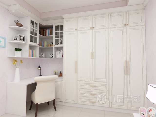 儿童房衣柜加书柜书桌