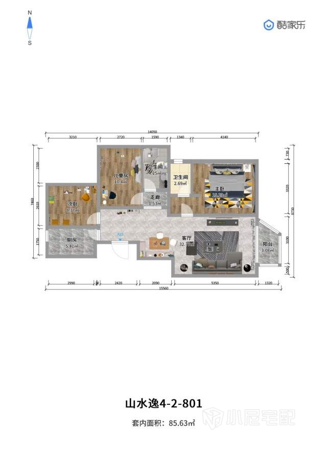 客厅以灰色现代简约装饰,给业主一种回家舒服自在的感觉,卧室以不同的风格体现,以满足孩子的愿望,整体以舒适,时尚结合打造出一个完美的家。